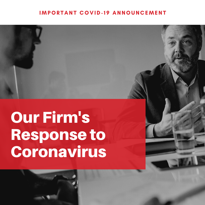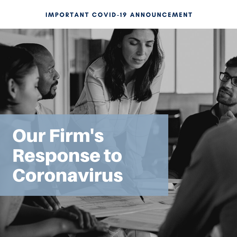 "Hi everyone! This is attorney________ and I wanted to give you some information about what our law firm is doing to keep you, our staff and our community healthy and safe in light of the COVID-19 virus. Your safety and wellbeing is and always has been our number one priority. That’s why our team is monitoring the situation closely, and currently our decision is to _____.”